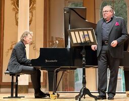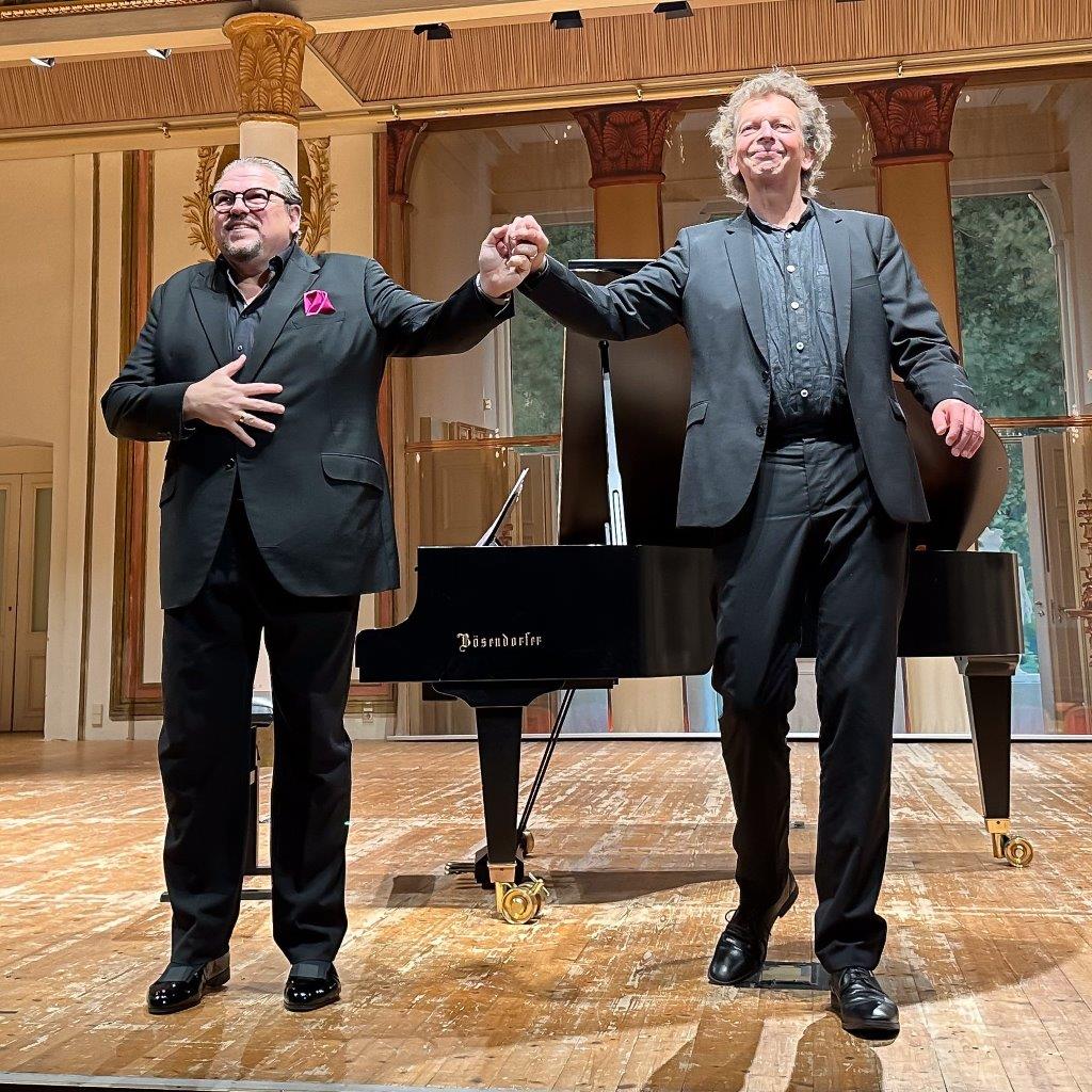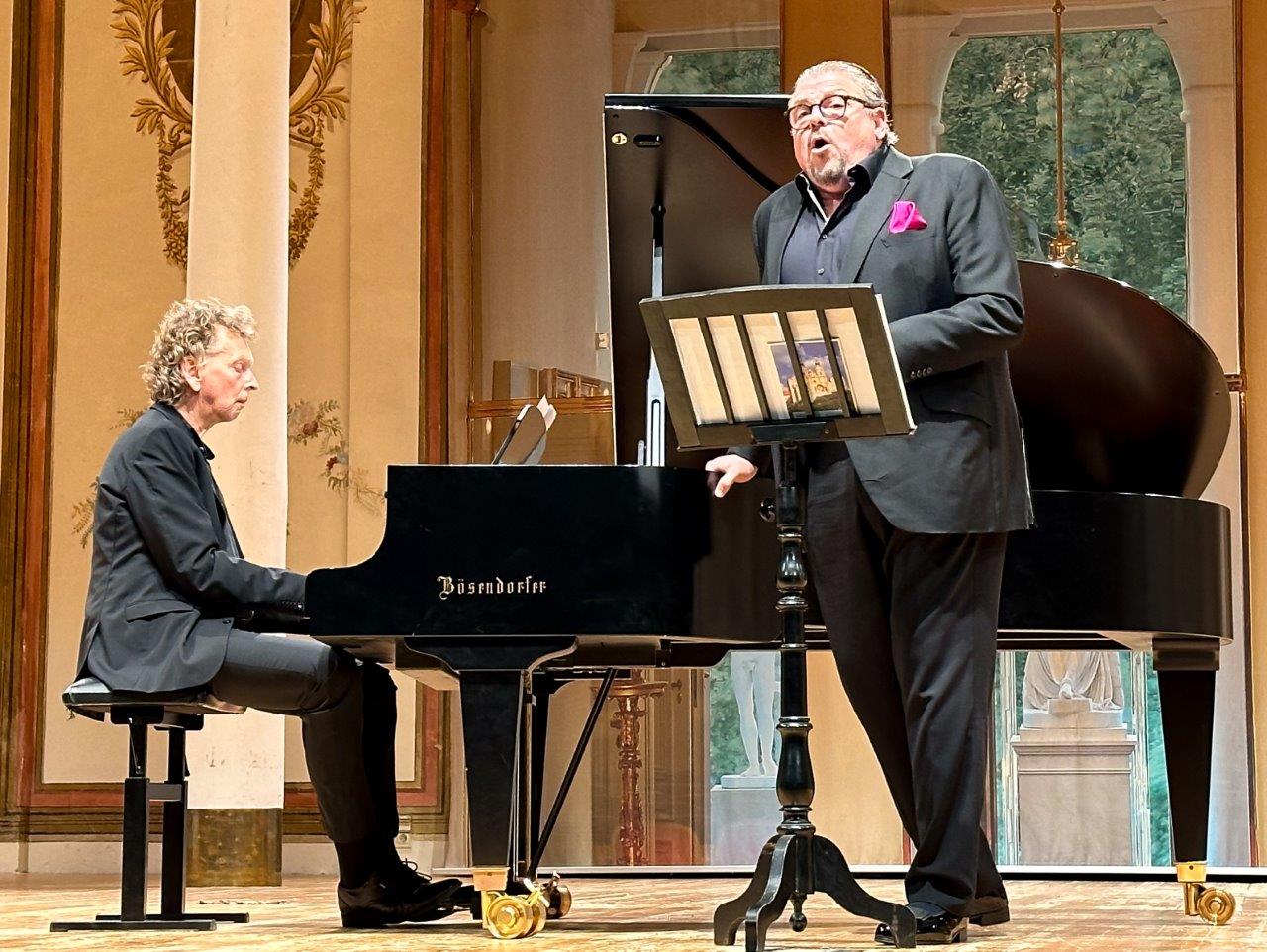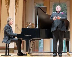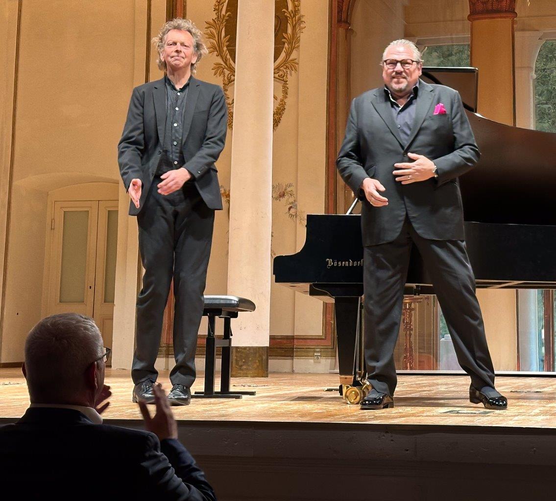 Dann begeisterte Michael Schade die Besucher mit einem Feuerwerk an Liedern, wobei ihn Justus Zeyen bravourös begleitete und an 3 Klavierstücken seine großen Fertigkeiten aufs Trefflichste unter Beweis stellte.