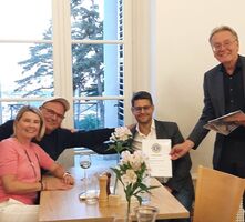 Die Gewinner der Schätzfrage und gleichzeitig auch das Siegerteam erhielten eine Flasche Champagner (gesponsert von der Flughafen Wien AG) und Gutscheine für unseren Charity Liederabend mit Michael Schade am 10.05.2024.