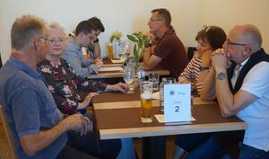 Unser Quiz-Moderator Mag. Peter Bolech erläuterte nach einer Begrüßung kurz die Spielregeln. Dann folgten 20 Fragen im Abstand von 3 Minuten. Vor dem Essen wurden die richtigen Antworten für die Fragen bekannt gegeben.