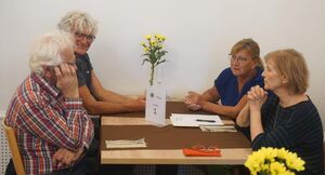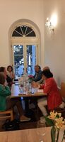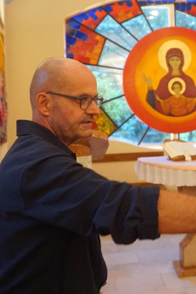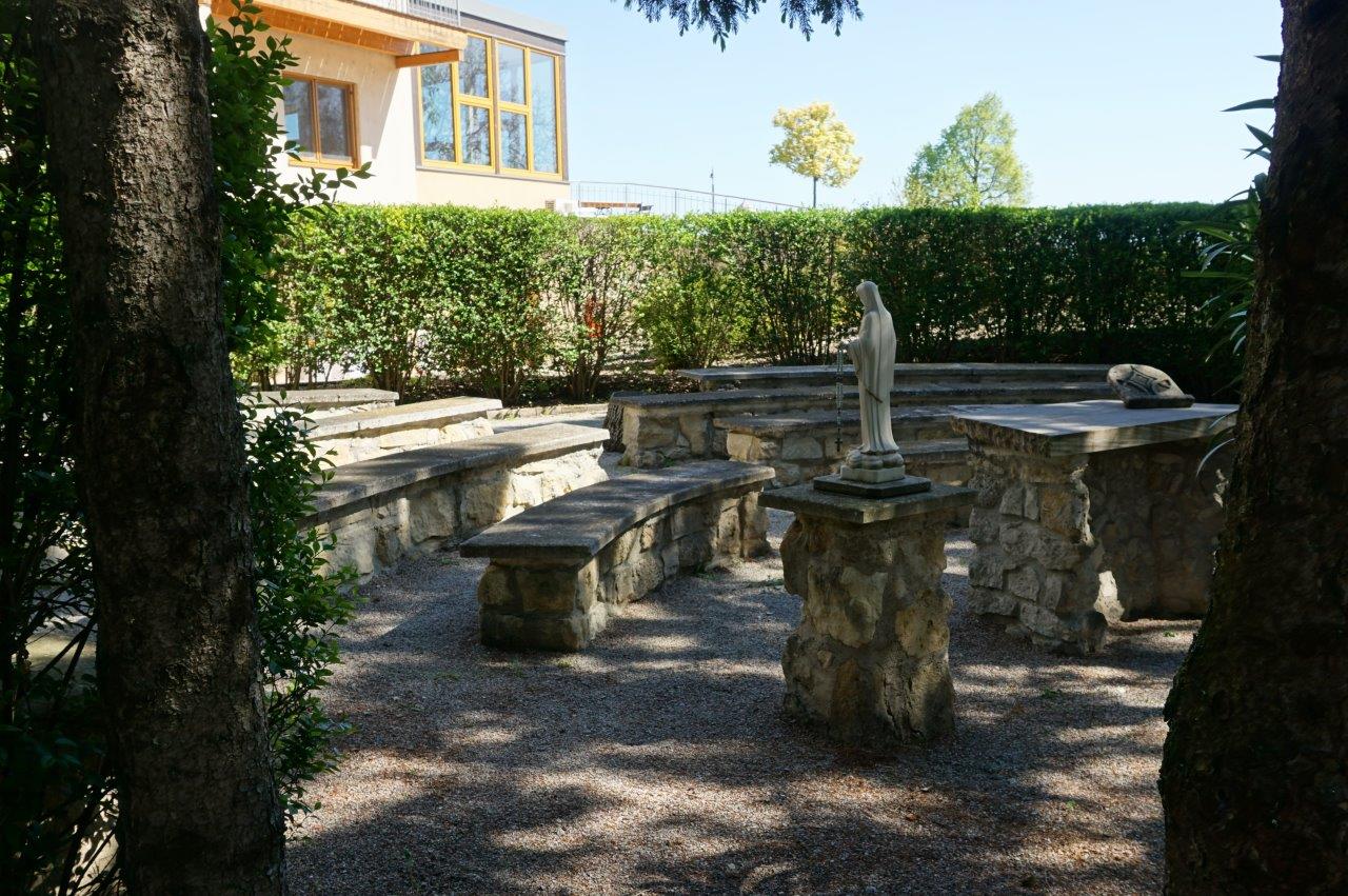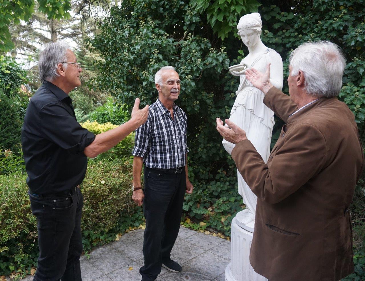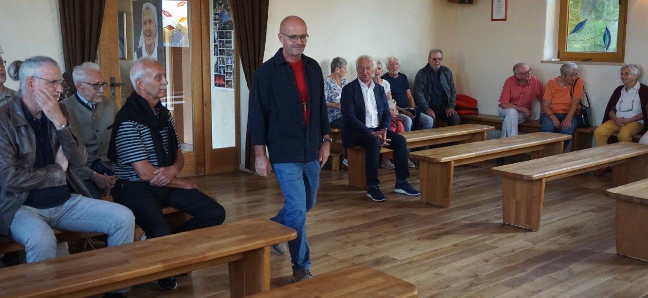 Wir erfahren die Geschichte der Gemeinschaft, besichtigen mit Bruder Georg das Haus inkl. Kapelle, Küche, Werkstätten, Stall, Gärtnerei, Gartenanlage inkl. Teich und den Fußballplatz.