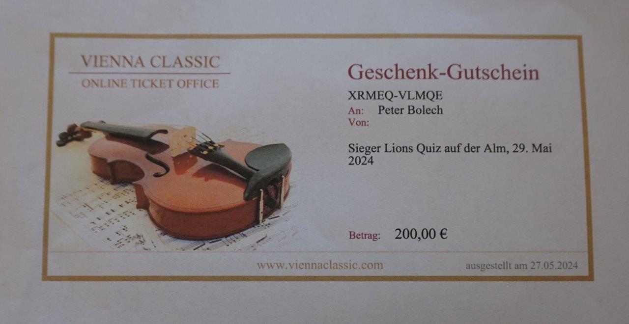 Die Gewinner der Schätzfrage erhielten eine Flasche Champagner (gesponsert von der Flughafen Wien AG), die Mitwirkenden im Siegerteam Gutscheine für das Konzert des Suzhou Chinese Orchestra am 24.09.2023 im Wiener Musikverein und für unseren Charity Liederabend mit Michael Schade am 10.05.2024.