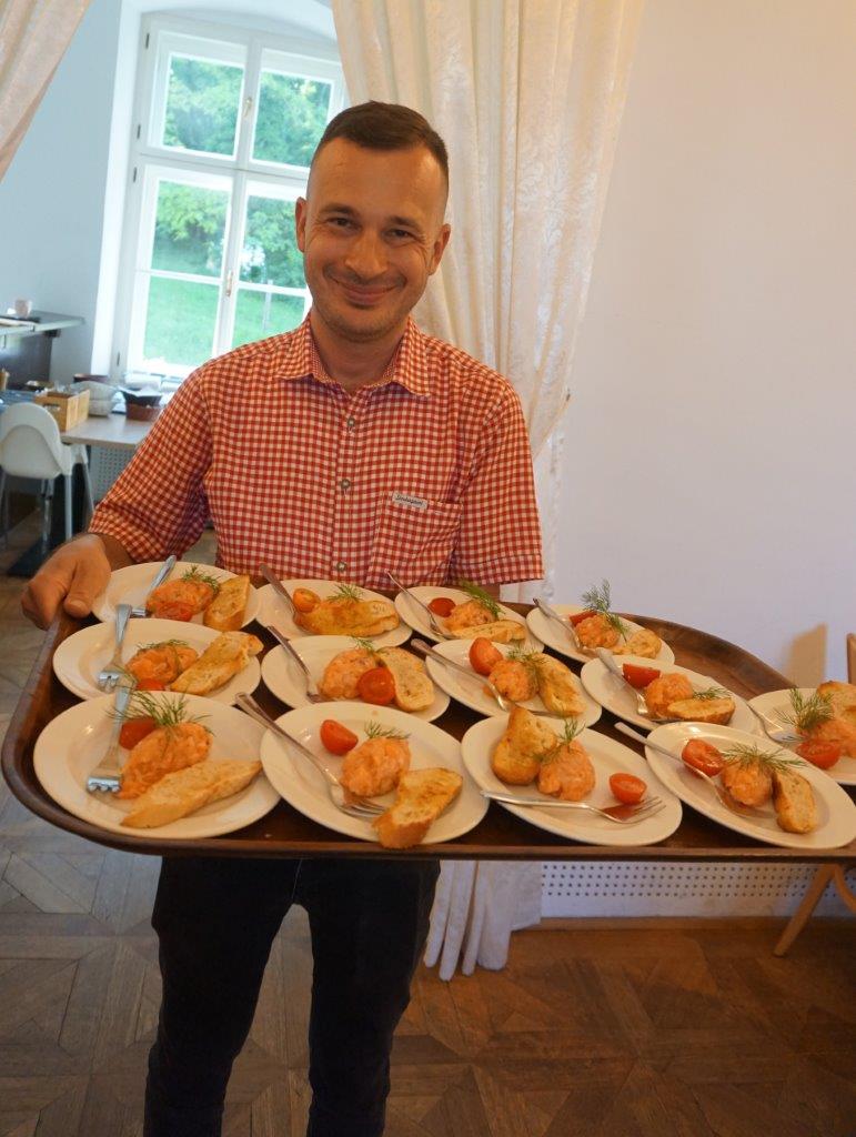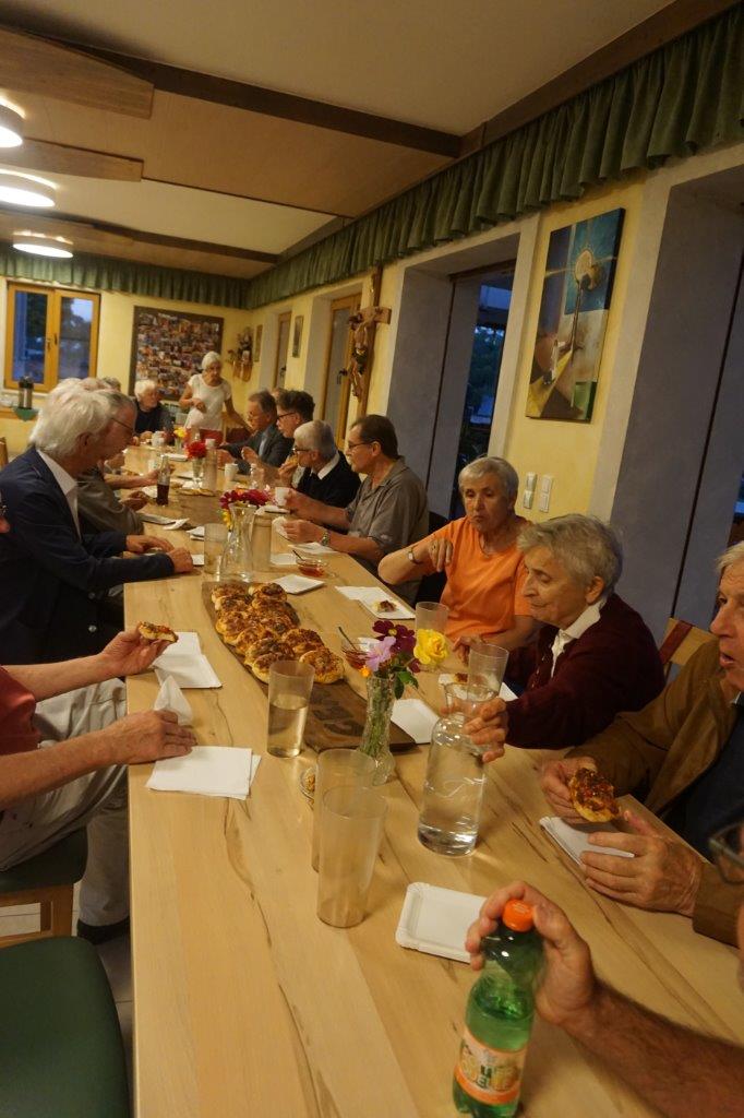 Nach Besichtigung der Einrichtungen erhielten wir noch selbstgebackene kleine Pizzen und Mehlspeisen. Als kleines Dankeschön überreichten wir Bruder Georg eine Spende in Höhe von 500 €.