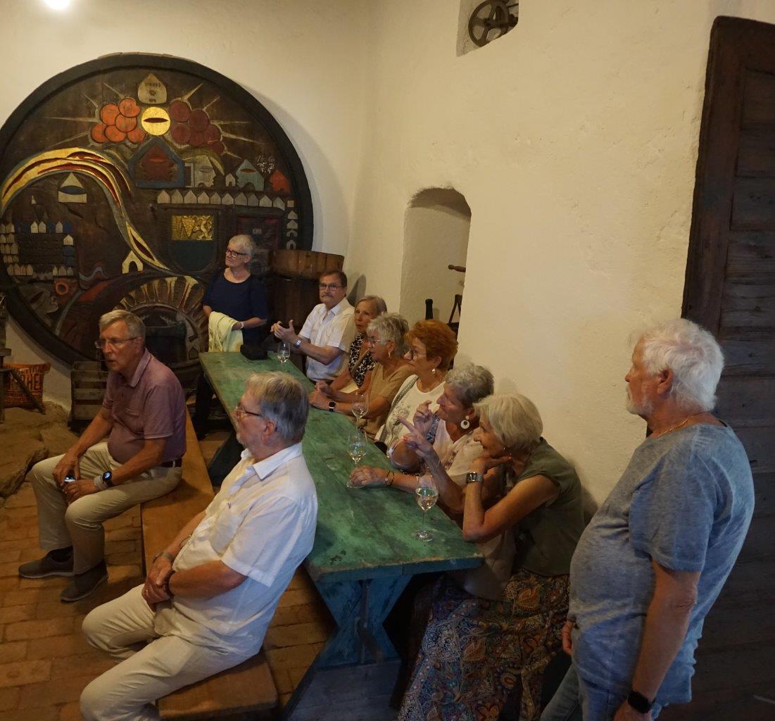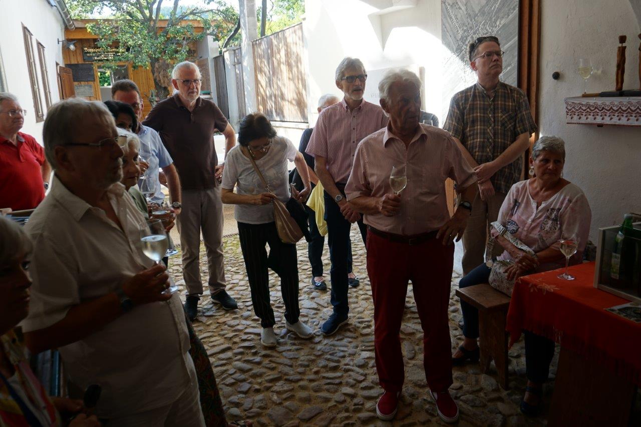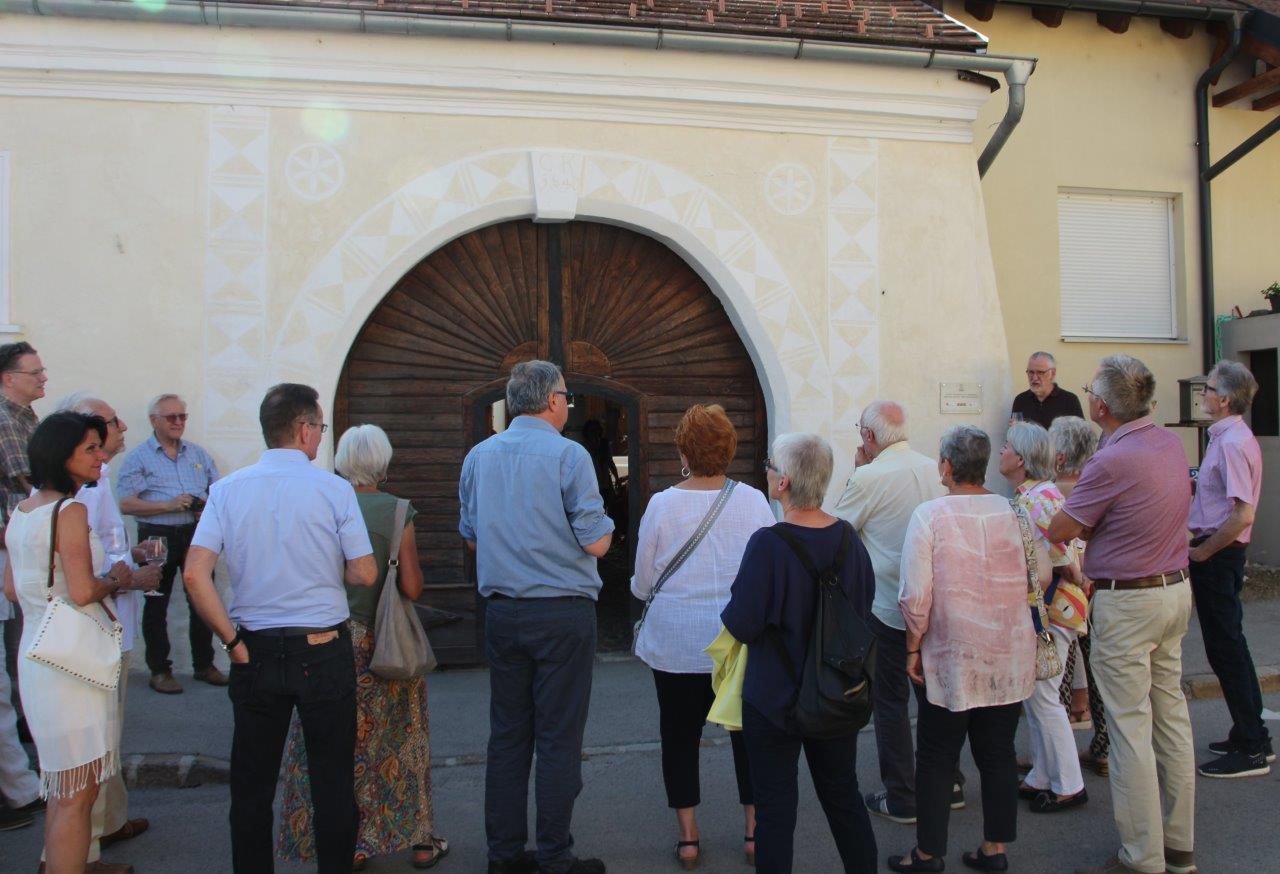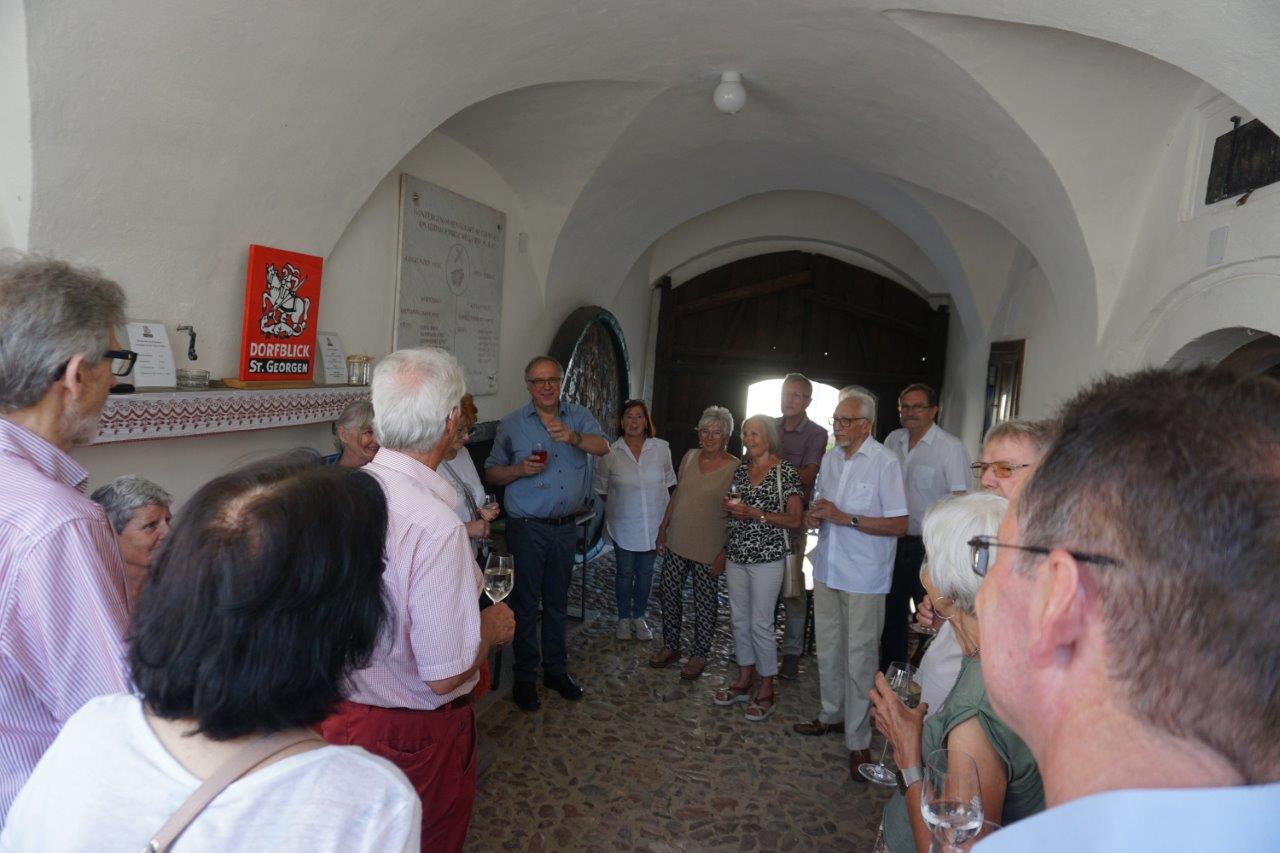Am 18. Juni 2024 besuchte der Lions Club Eisenstadt mit Gästen das alte Presshaus in St. Georgen, in welchem auch das Weinbau-Archiv und ein Schaudepot untergebracht sind. Der Obmann des Vereins „Dorfblick St. Georgen“, Mag. Dr. Erich Kummer, begrüßte 22 TeilnehmerInnen recht herzlich und erläuterte die Restaurierung, Adaptierung und Erweiterung des ältesten Hauses von St. Georgen (1640). Die Arbeiten wurden vom Verein Dorfblick St. Georgen in den letzten 26 Jahren initiiert und mit Unterstützung des Bundesdenkmalamtes, des Amtes der Burgenländischen Landesregierung, der Stadtgemeinde Eisenstadt und diversen Spendern durchgeführt.