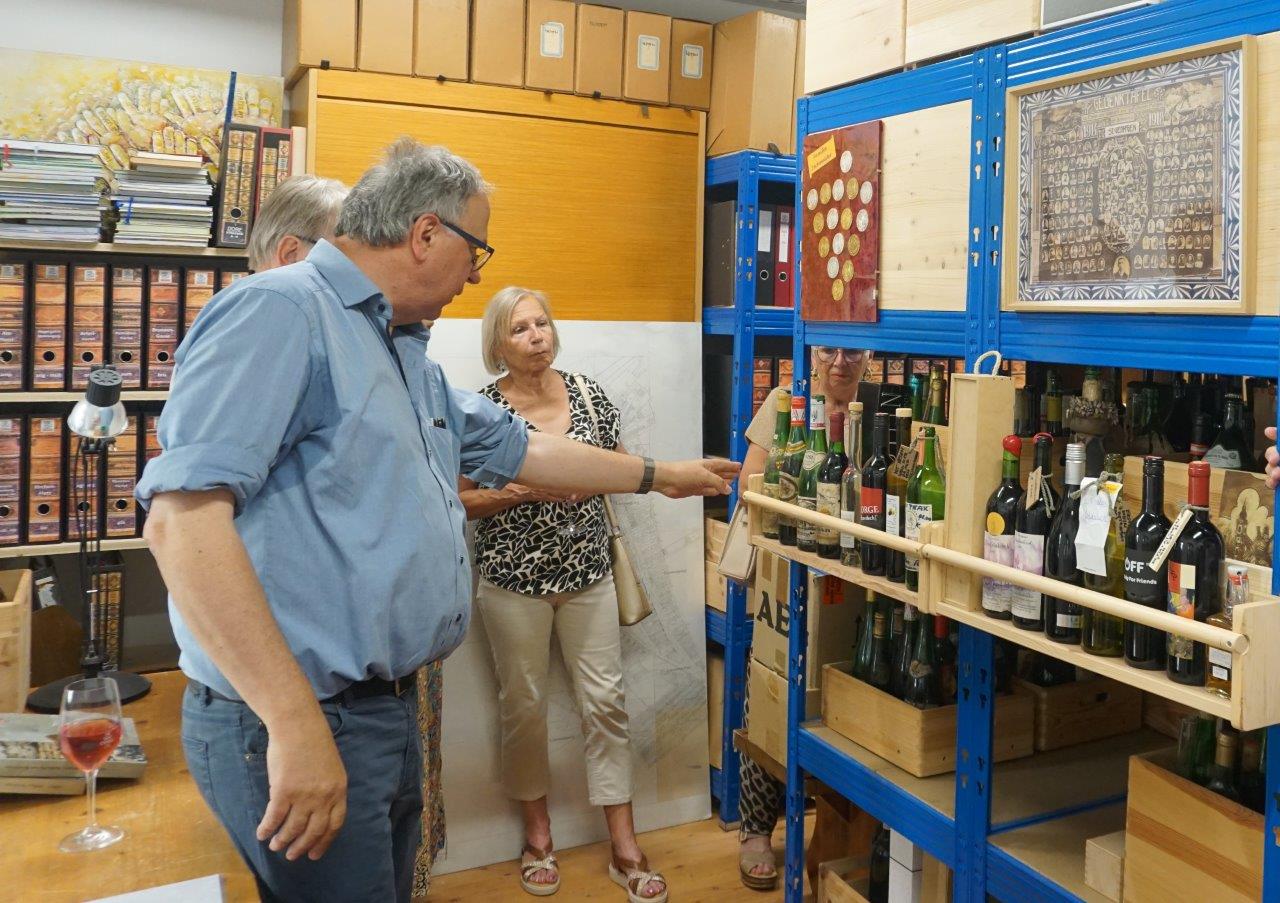 Mit Unterstützung von Maria Steurer wurden die BesucherInnen über die Arbeiten des Vereins „Dorfblick St. Georgen“ informiert. Beeindruckend waren auch die laufenden Arbeiten am Weinbau-Archiv, die zukünftig unter wissenschaftlicher Begleitung fortgeführt werden sollen.