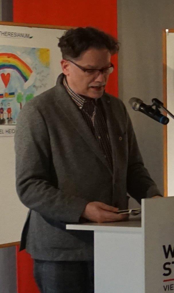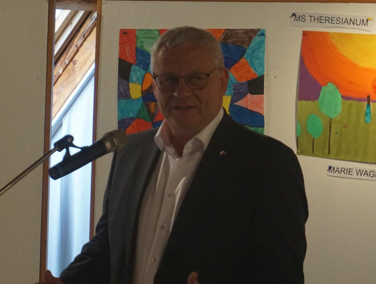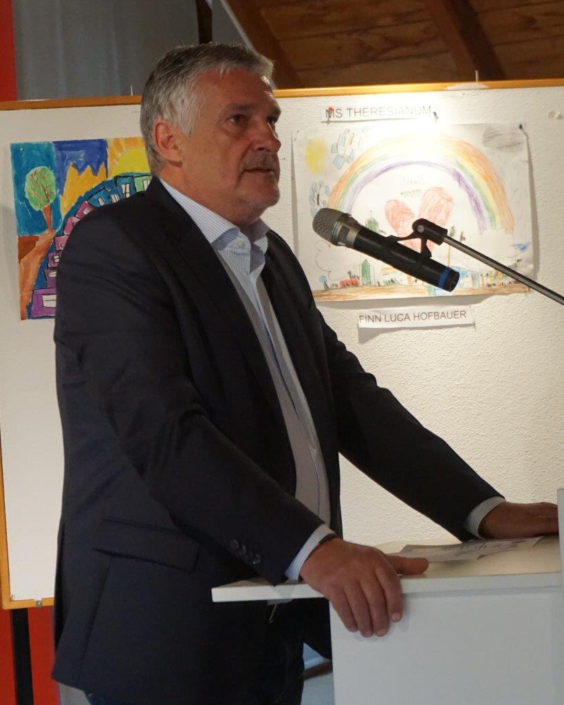 Landesdirektor KR Mag. Gerold Stagl, Präsident Mag. Peter Bolech, Bgm. Mag. Thomas Steiner und LRin Mag. Daniela Winkler freuten sich, 80 TeilnehmerInnen begrüßen zu dürfen. Harro Pirch lobte die Arbeiten der jungen Künstler und den Einsatz der Lehrkräfte für diese Aktion, die weit über die Schule hinaus Wirkung zeigen sollte.