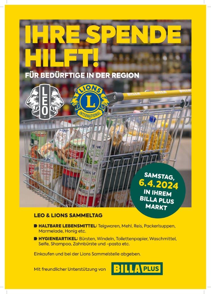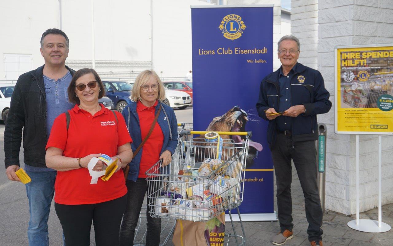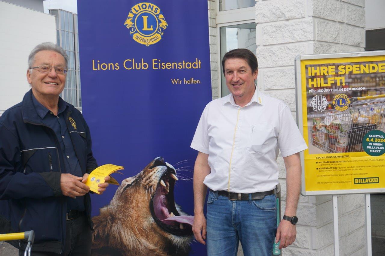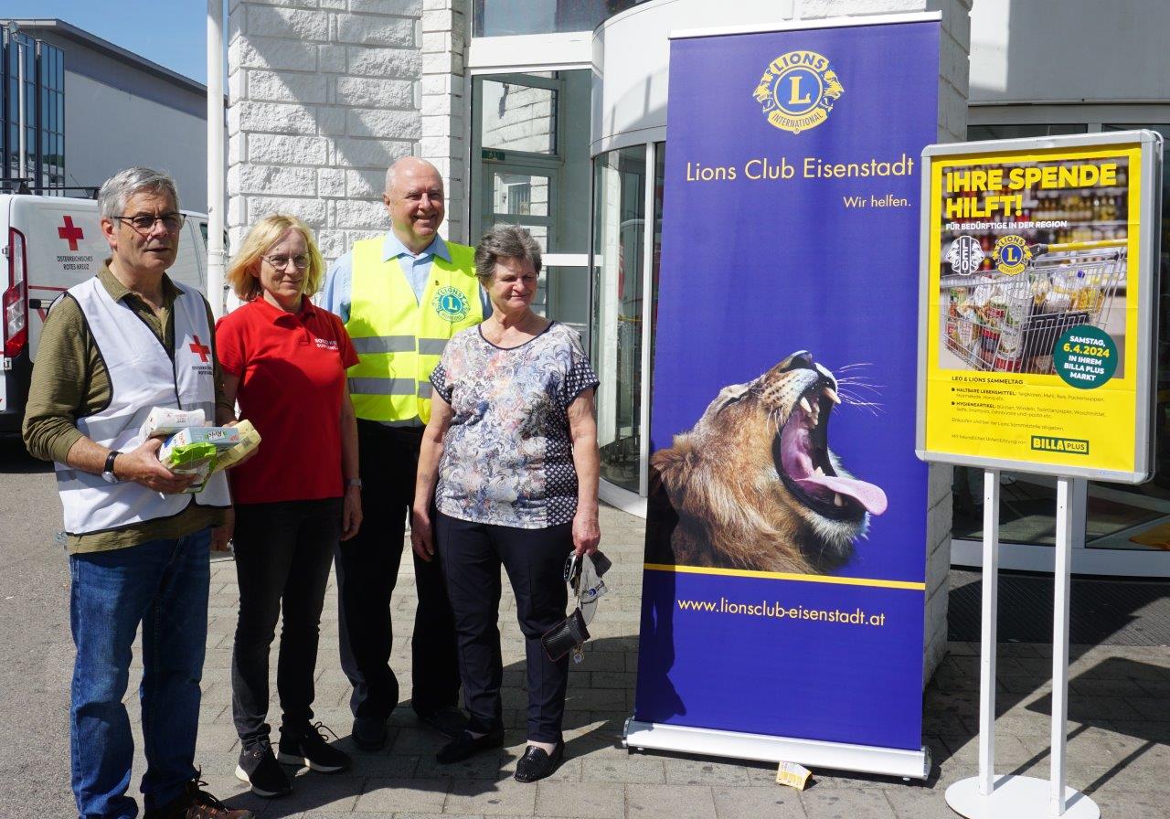 Bei der alljährlichen Sammlung des Lions Club Eisenstadt für Bedürftige im Bezirk Eisenstadt wurden am 6. April 2024 insgesamt 1.200 Produkte mit einem Warenwert von ca. 3.000 € in den beiden BILLA PLUS Märkten in Eisenstadt von den Kunden gespendet.