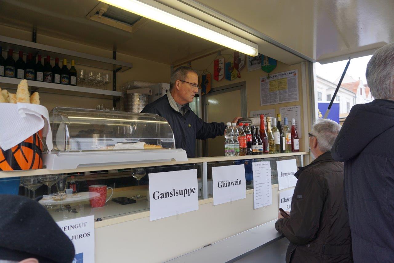 Nach dem Festgottesdienst im Dom St. Martin folgte die Weintaufe auf dem Hauptplatz. Auch der Lions Club Eisenstadt war wieder mit tatkräftiger Unterstützung durch Michael Juros mit unserem Verkaufswagen auf der Fußgängerzone beim Martini Kirtag vertreten. Bis 19:00 herrschte rege Nachfrage nach der traditionellen Ganslsuppe, Käsestangen, Jungweinen, Sekt und div. Weinen. Wir danken recht herzlich für Ihren Besuch.