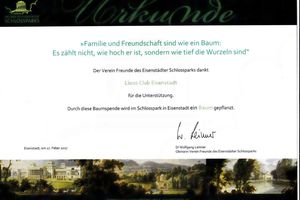 Anlässlich des 100. Geburtstages der Lions übernahm der Lions Club Eisenstadt die Baumpatenschaft für eine Gruppe von Taschentuchbäumen vor dem Leopoldinenteich im Eisenstädter Schlosspark. Der Name der Bäume nimmt Bezug auf die weißen Hochblätter, die wie Taschentücher in den Ästen hängen. Dieser Baum stammt aus China und ist für die Lions auch als Symbol für die weltweiten Aktivitäten und die Verwurzelung unseres Clubs in der Landeshauptstadt Eisenstadt anzusehen.