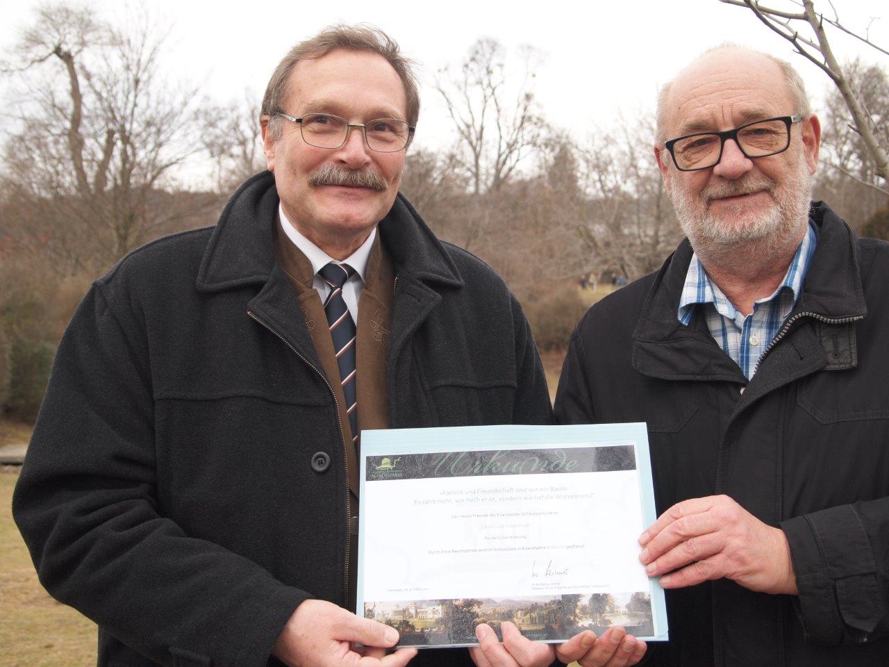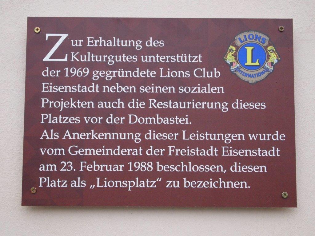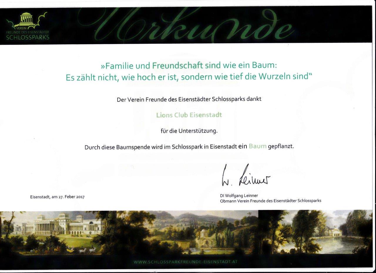 Am 27. Februar 2017 wurde vom Präsidenten des Lions Club Eisenstadt, Hrn. Ing. Reinhard Hackel in Anwesenheit von Bgm. Mag. Thomas Steiner und dem Obmann der Freunde des Eisenstädter Schlossparks, Hrn. DI Wolfgang Leiner feierlich ein Gedenkstein enthüllt und eine Stiftungsurkunde übergeben.