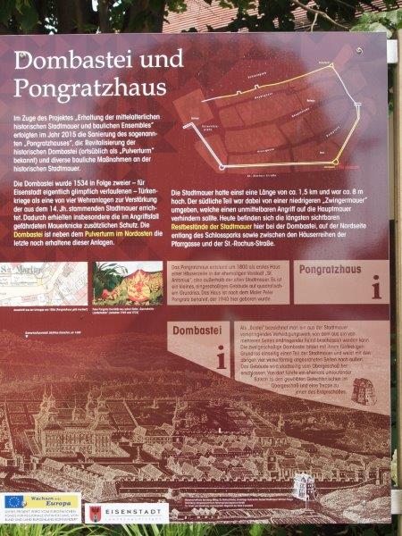 Jahrzehntelang fristete die Dombastei am Eisenstädter Lionsplatz ein Dornröschendasein. Nun wurde sie im Zuge des Projektes „Erhaltung der mittelalterlichen historischen Stadtmauer und baulichen Ensembles“ gemeinsam mit dem Pongratz-Haus und dem Lionsplatz saniert und am 2. Juli 2015 im Rahmen eines Festaktes und einem Tag der offenen Tür der Öffentlichkeit übergeben.