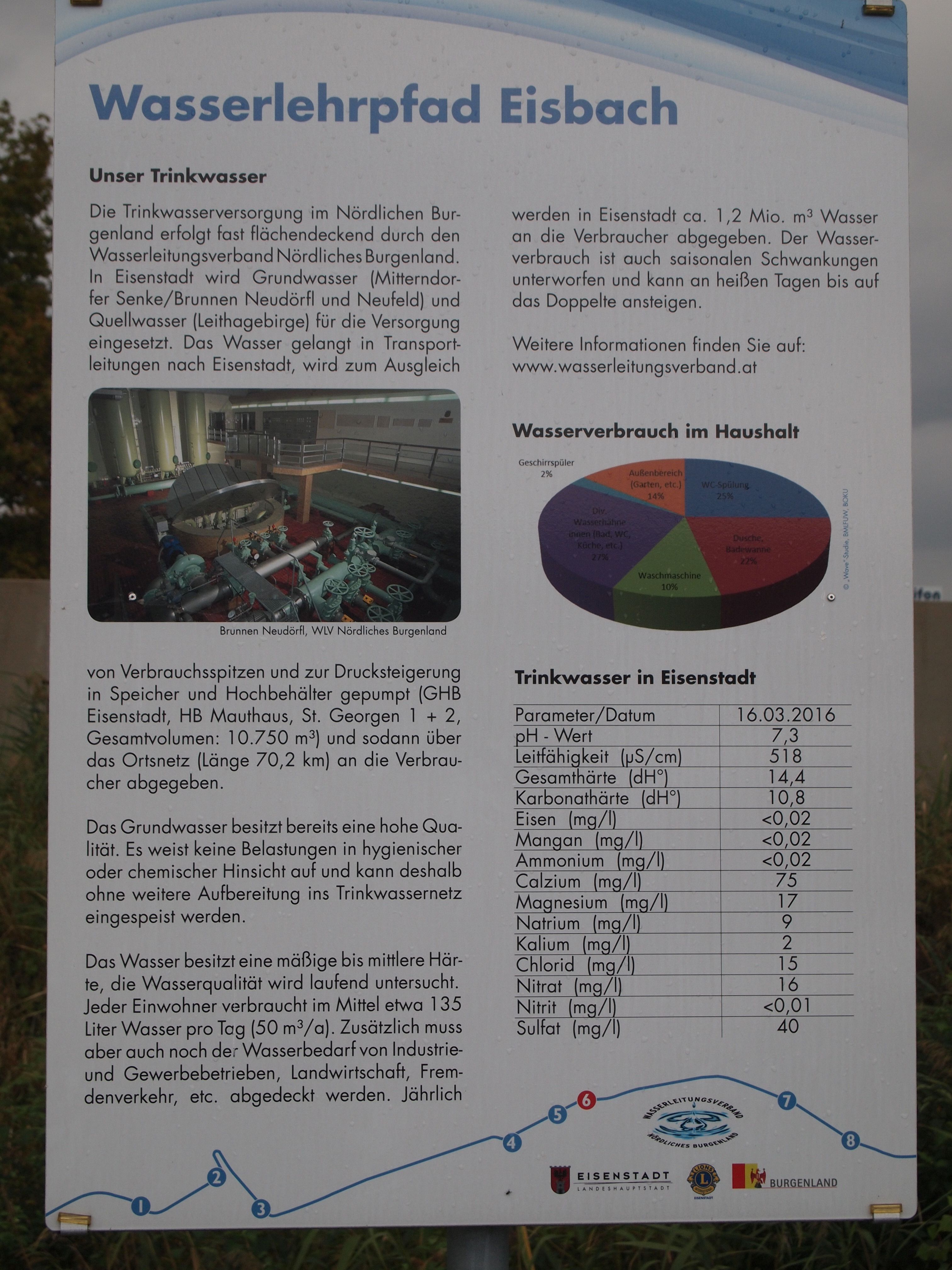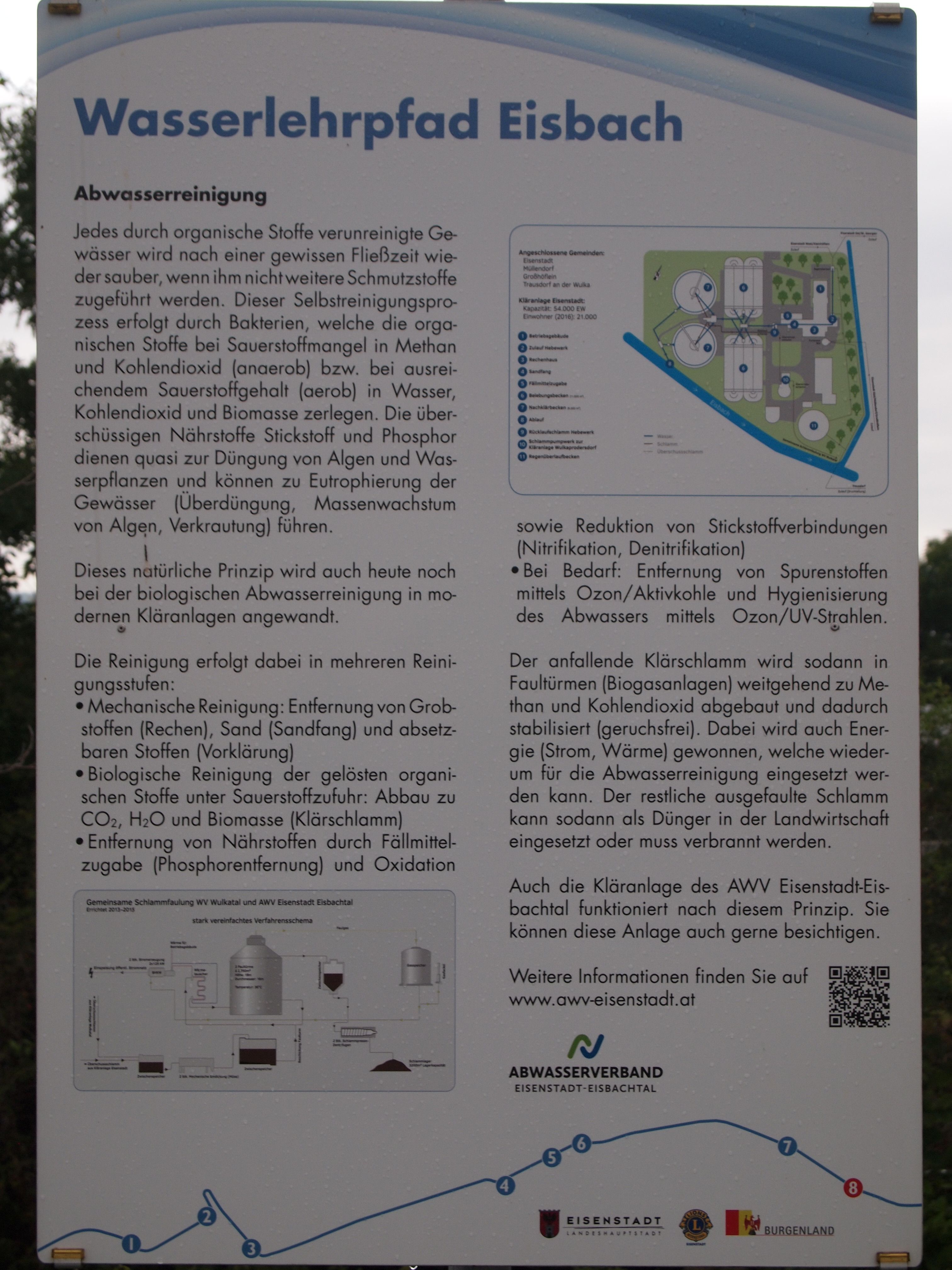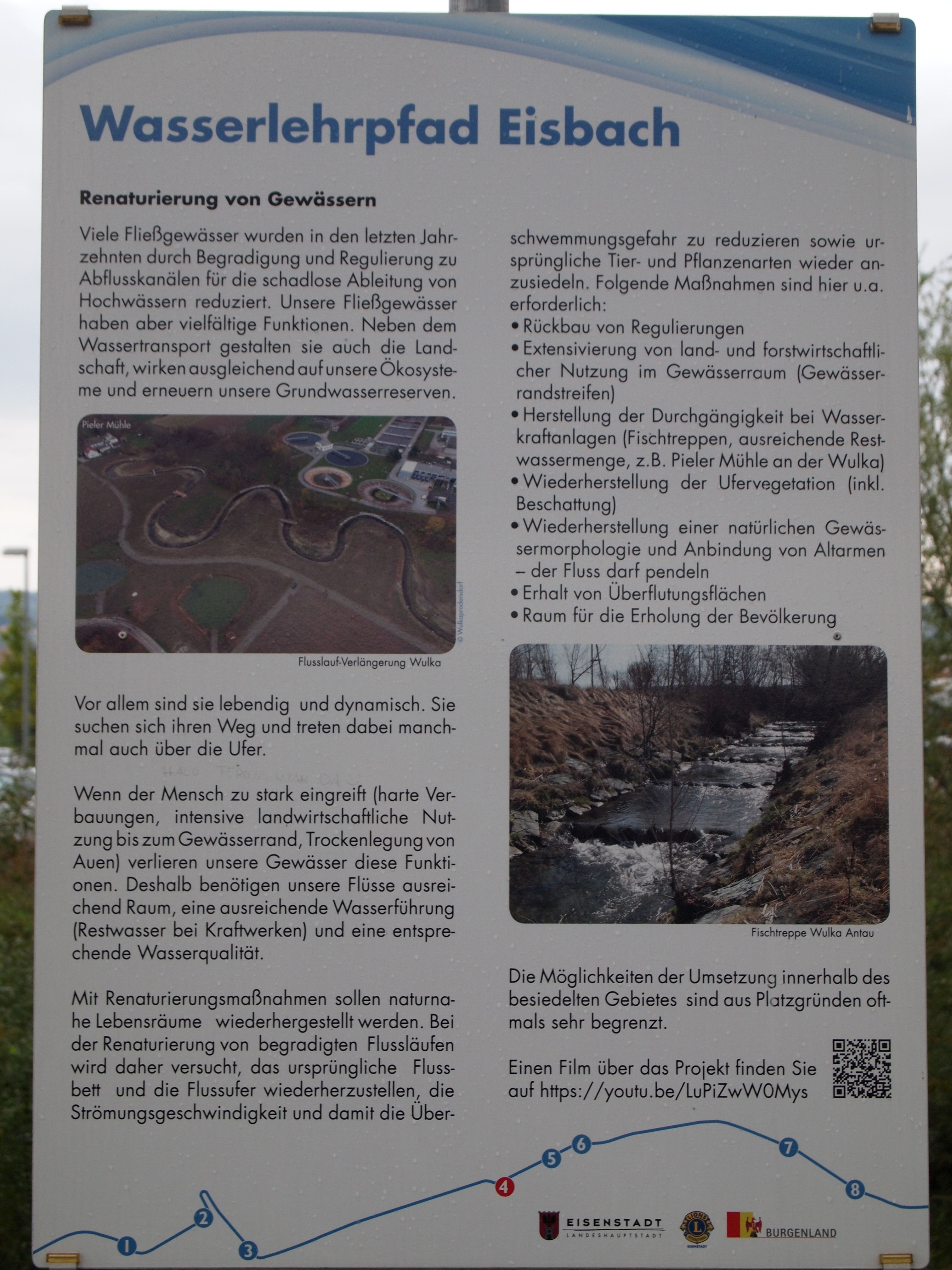 Anlässlich des hundertjährigen Bestehens der weltweiten Lions Vereinigung errichtete der Lions Club Eisenstadt in Zusammenarbeit mit der Freistadt Eisenstadt einen Wasserlehrpfad entlang des renaturierten Eisbaches in Eisenstadt. Auf 8 Schautafeln und mit einer Begleitbroschüre wird der Besucher über den Eisbach, das Leben im Wasser, den Hochwasserschutz, die Renaturierung von Gewässern, den Wasserkreislauf, die Wasserversorgung, die Kanalisation und die Abwasserreinigung informiert.