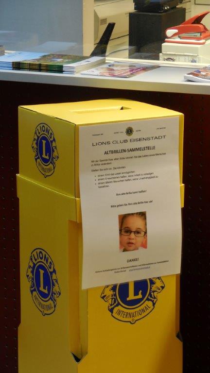 Der Lions Club Eisenstadt sammelte im Jahre 2016 in der Landeshauptstadt und im Bezirk Eisenstadt-Umgebung mit 20 Sammelstellen Altbrillen. Insgesamt wurden von der Bevölkerung bis zum Jahre 2020 3.280 Altbrillen gespendet und vom Lions Club Eisenstadt an die Optikerschule nach Hall in Tirol geschickt.